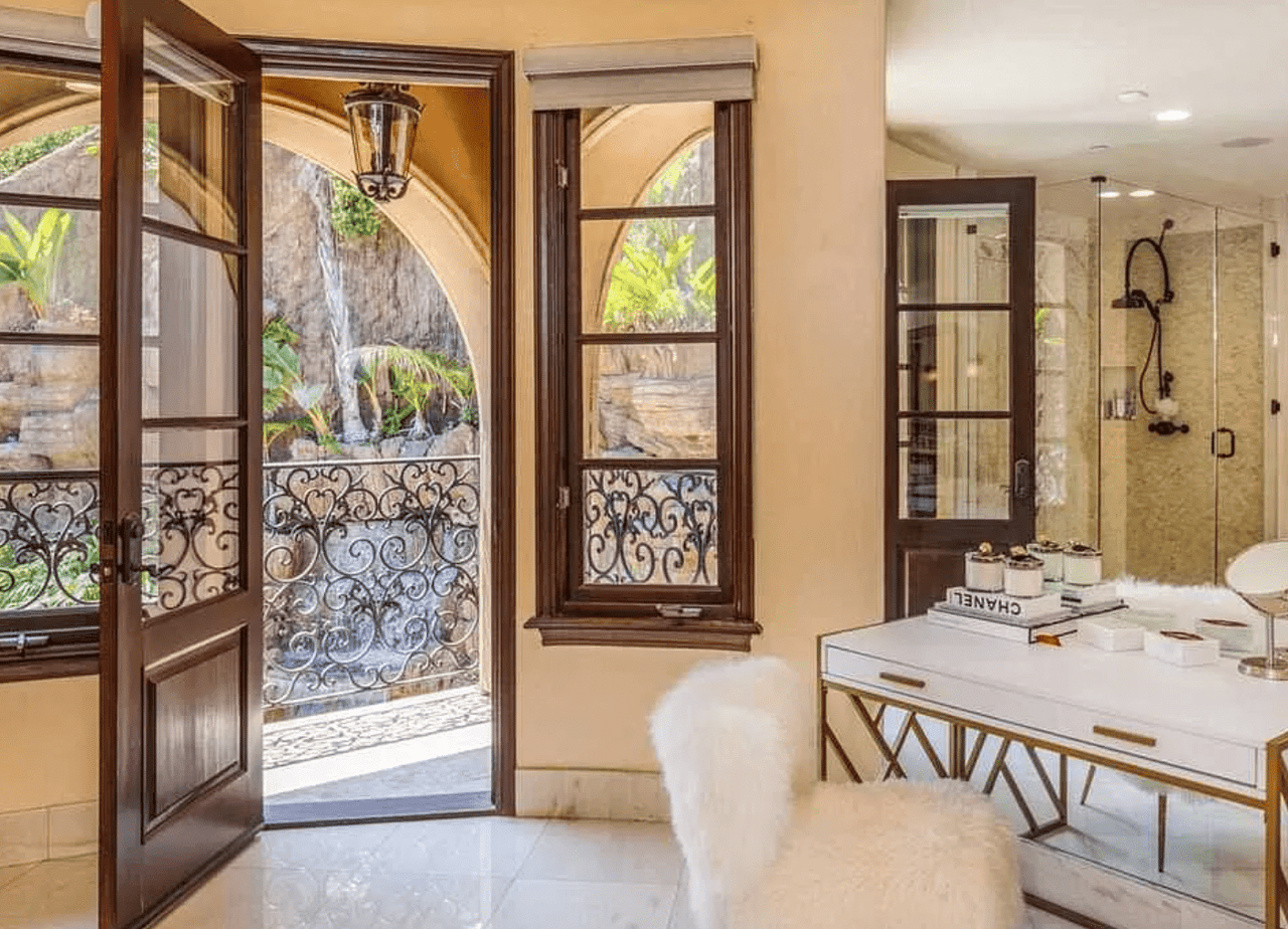 Gates Beverly Hills estate on a private cul de sac. This gracious and elegant, five-bedroom, seven-bathroom estate boasts a grand entry with a curved staircase leading to three ensuite bedrooms and an impressive master suite with a romantic balcony and a sunny bathroom with spa tub. The entry showcases an incredible volume, scale, high ceiling, a formal living, and dining, gourmet chef's kitchen, and huge pantry, breakfast room, spacious family room, and a fireplace. French doors leading to resort-like pool and spa. On the lower level, there is a fifth ensuite bedroom and media room perfect entertaining. The hillside is a paradise of privacy with mountain and city views, terraced patios, fountains, and a courtyard for entertaining, two-car garage, and ample parking. The main level with Mahagony wood floors consists of formal living and dining a gourmet chef's kitchen with a generous center island.