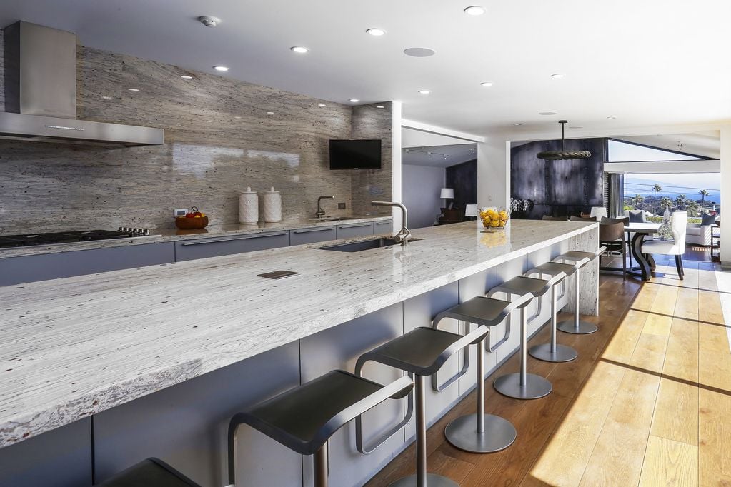 This gated Estate offers a new Salt Water Pool and outdoor entertainment area with sand fire-pit, an organic fruit orchard, drought tolerant landscaping, a full guest house overlooking the pool plus lots of flat land for gardening & other outdoor pastimes. Interior features include a huge Balthaup Kitchen with walnut cabinetry and stainless steel appliances. Enjoy the spacious ocean view Master Suite with fireplace and master bathroom with steam shower and soaking tub looking out to the Santa Monica Bay.