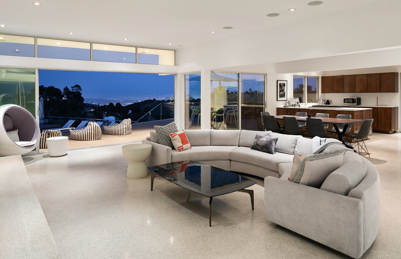 This stunning midcentury modern villa located in the prestigious Hollywood Hills was built by renown architect Merle Roussellot and was the former home of a DreamWorks Producer.