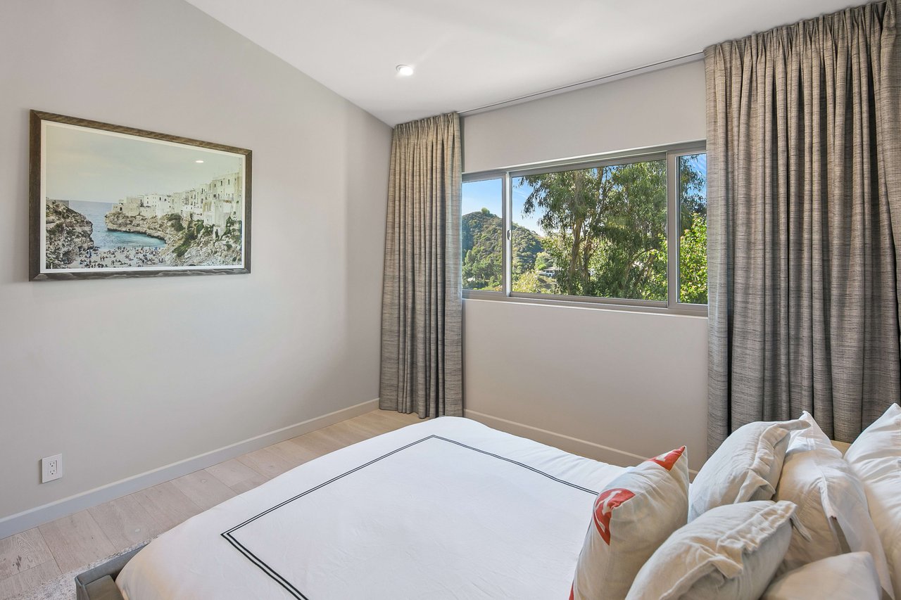 This newly renovated 3 Bedroom, 2.5 Bathroom Hideaway features a dual level floorplan with formal living and three bedrooms on the upper-level that soak in the warm natural light and soaring tree top views of Franklin Canyon.