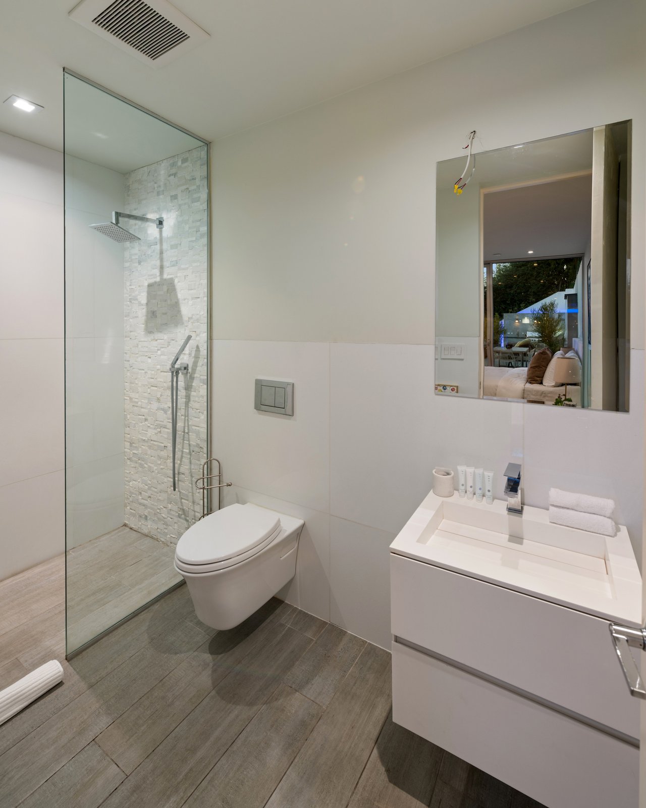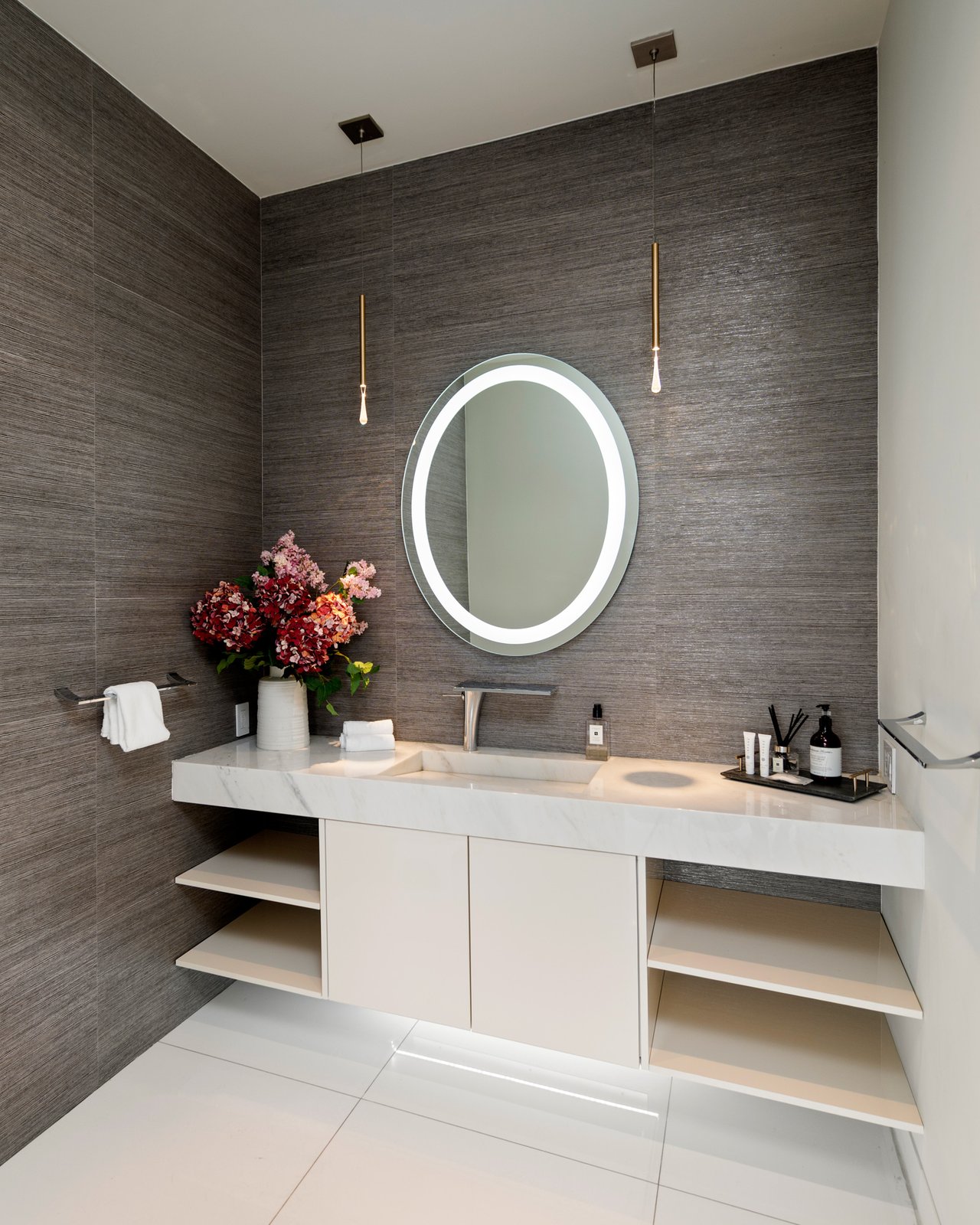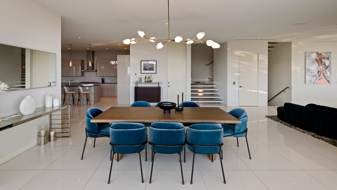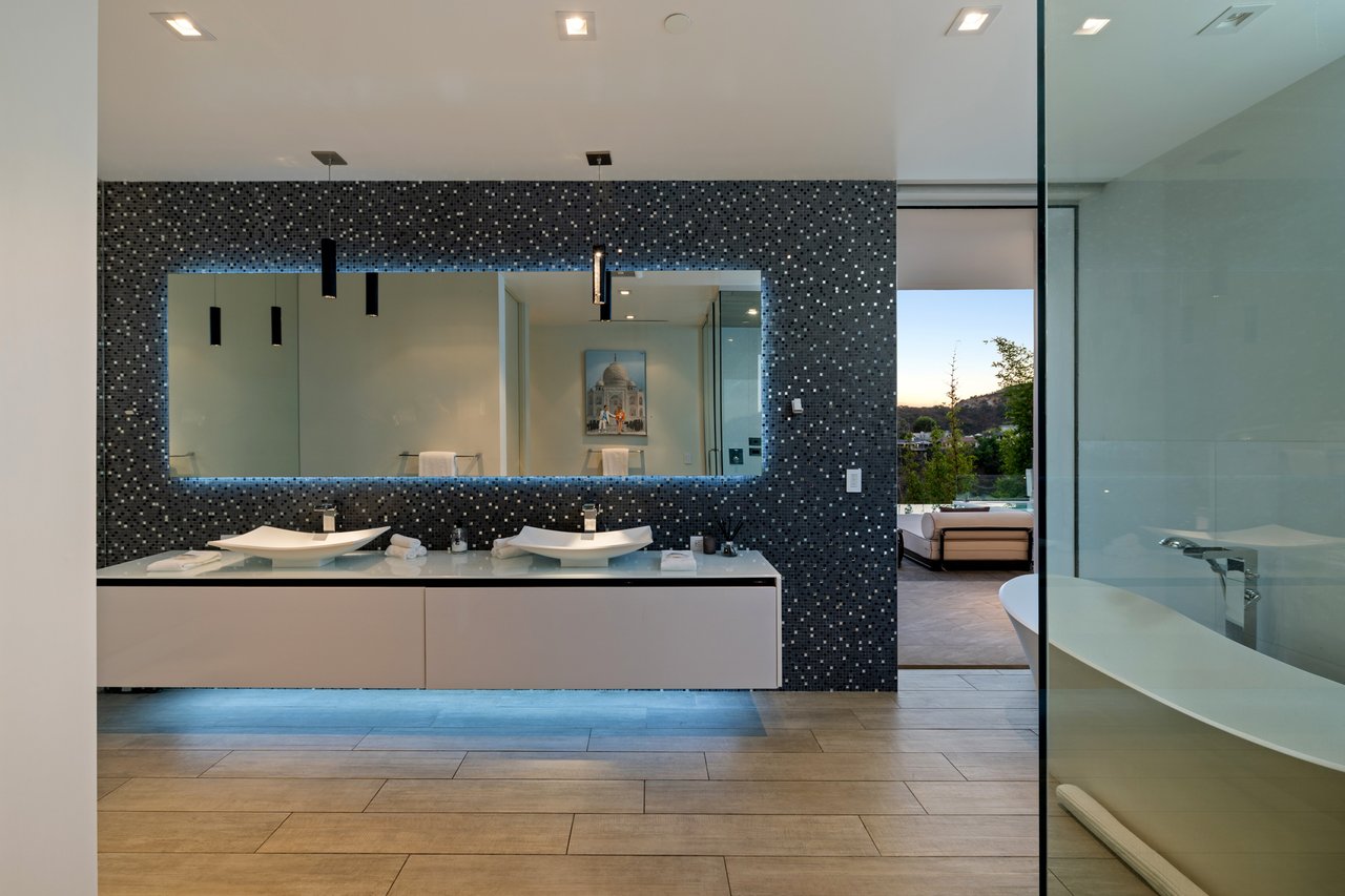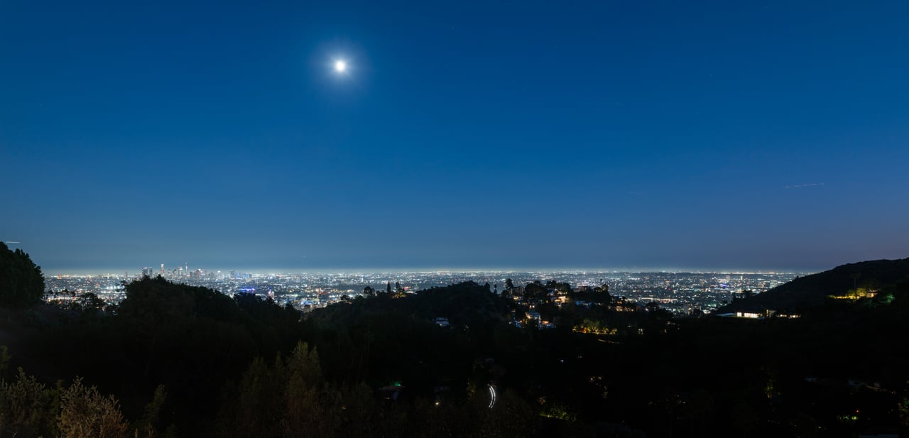 Set at the end of a private, gated drive, this architectural masterpiece offers unparalleled privacy and sweeping panoramic views stretching from Downtown LA to Catalina Island. Featuring three levels of seamless indoor-outdoor living, the home boasts polished white marble floors, floor-to-ceiling glass walls, and stunning vistas from every room. The first level includes a spacious lounge and luxurious bedroom suite. A floating staircase leads to the second level, where a chef's kitchen with high end appliances, custom European cabinetry, indoor/outdoor dining areas, and a private guest suite await. The lower level is a true retreat with two additional bedrooms, including a master suite with direct access to a resort-style infinity pool and swim-up bar. Expansive patios, lounging areas, and a cozy fireplace complete this extraordinary home, designed to captivate and elevate your lifestyle.