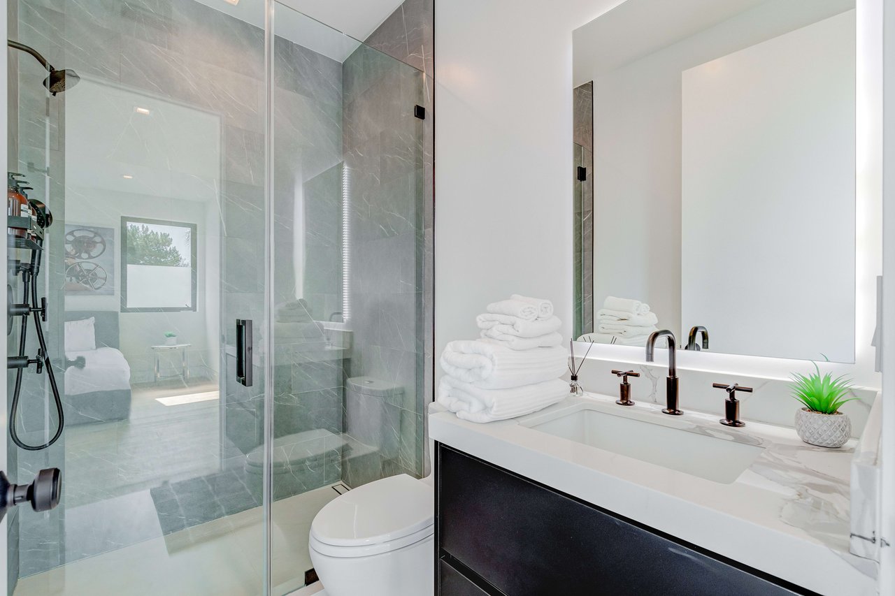 This contemporary villa sets a new standard for fully furnished homes in Beverly Hills, CA. An entertainers dream, complete with floor to ceiling retractable glass doors, smart home system, plenty of indoor/outdoor living space & a nice-sized backyard with a pool, spa & even a water fountain. The incredible open kitchen is equipped w/ top of the line Wolf appliances, Subzero fridge & freezer, custom cabinetry, an oversized island, & walk-in pantry. The primary suite provides a private balcony, a large walk-in-closet and a spacious bathroom w/ soaking tub & steam shower. The home also has 3 additional ensuite bedrooms w/ gorgeous custom bathrooms & large closets; one which is downstairs, perfect for guests or an office. In addition, this property has a one-of-a-kind expansive roof deck overlooking the city of Beverly Hills; with views of the mountains, Hollywood sign & Downtown LA.
