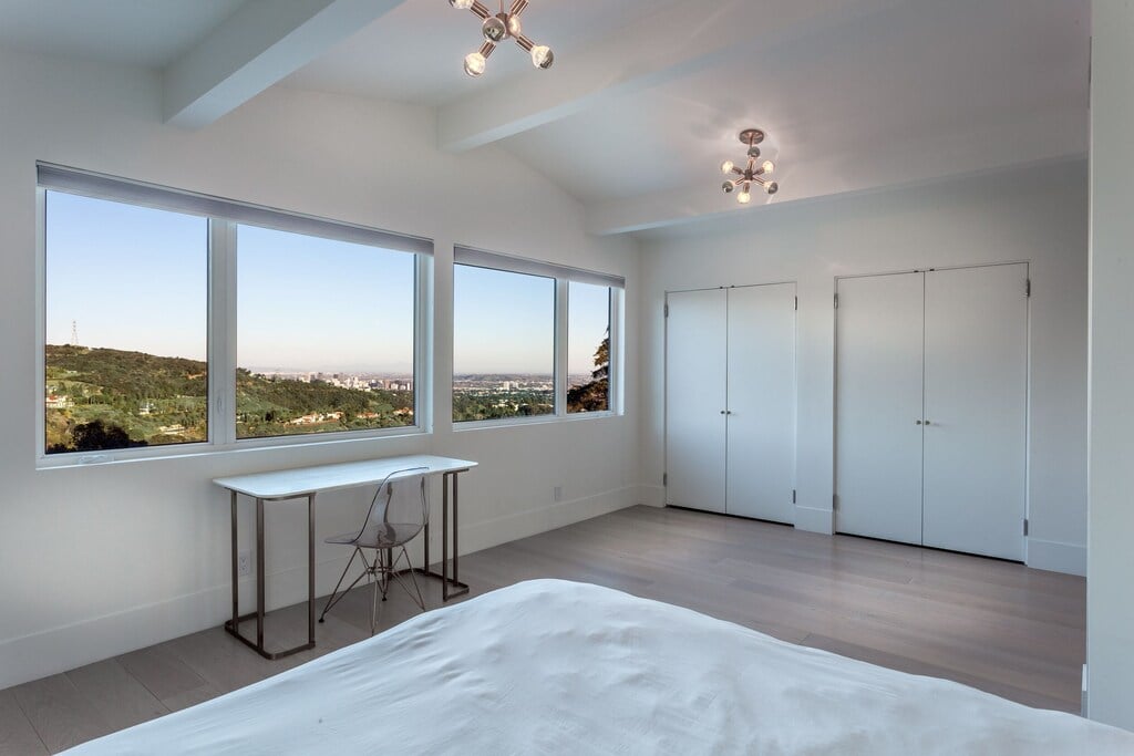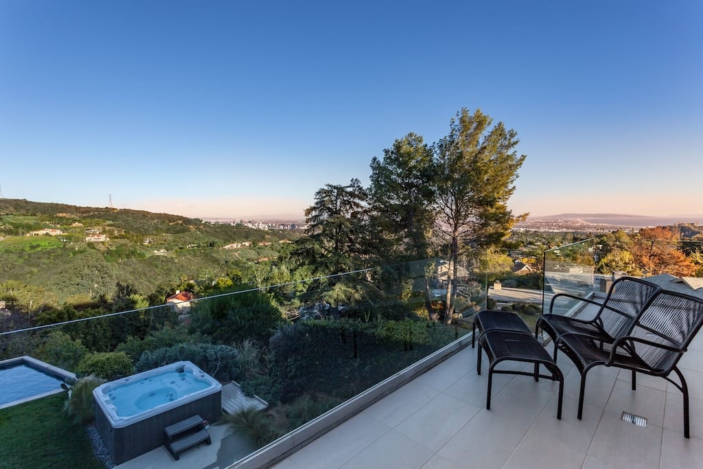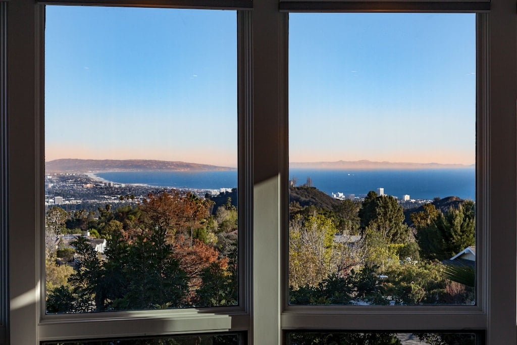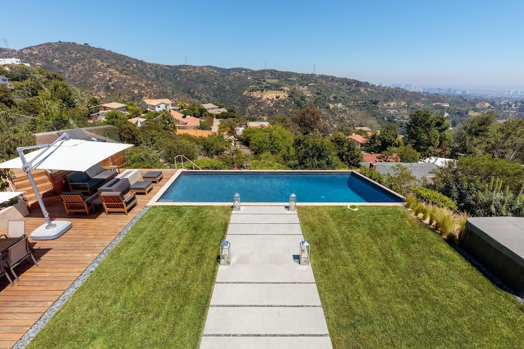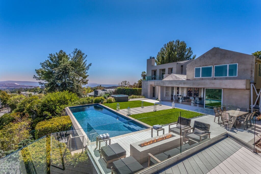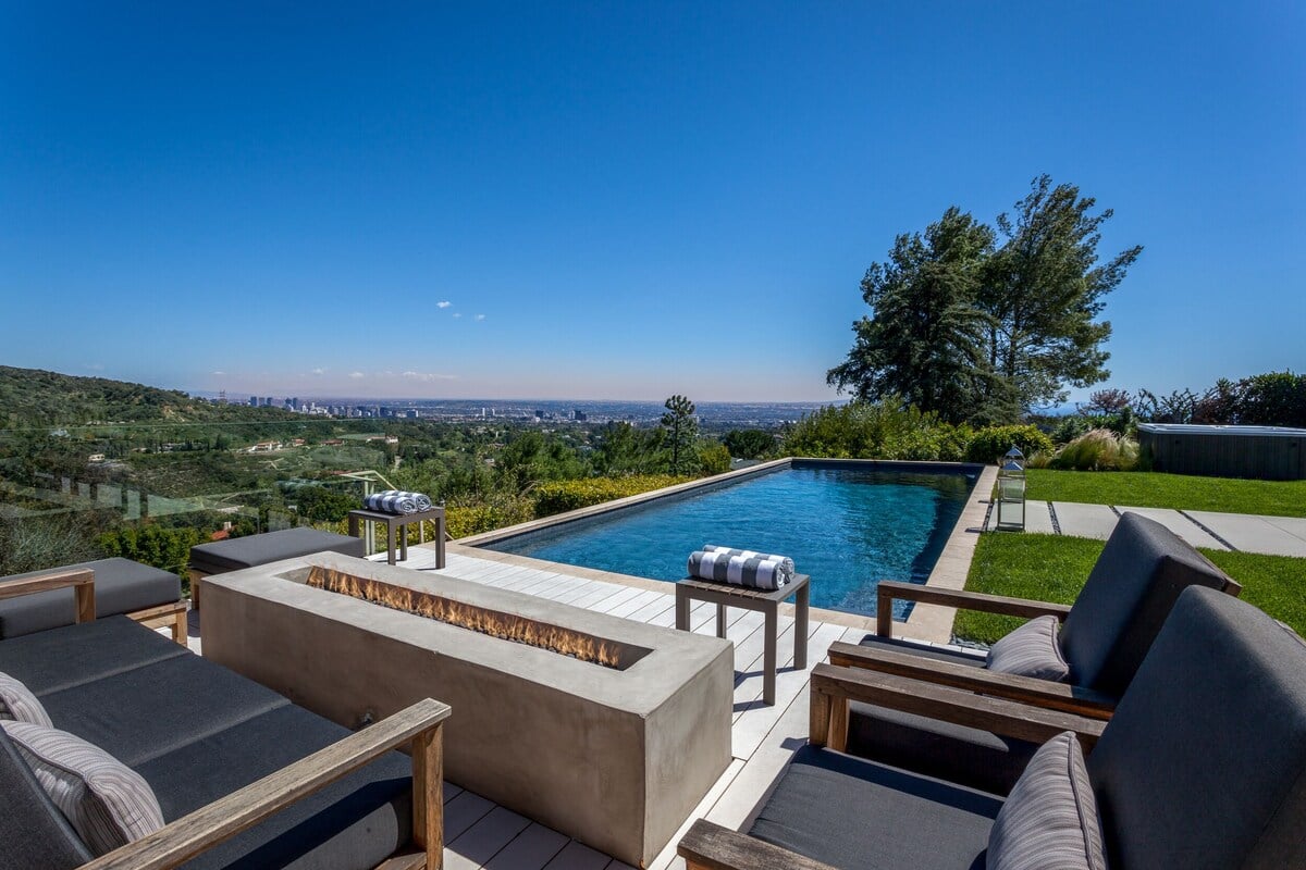 Architectural home located at top of Brentwood Hills with remarkable design and effortless flow. The property features 5 Bedroom and 5 Bathrooms, with an unmatched backyard that provides unobstructed views of the rolling hills and Los Angeles skyline. Partial ocean views from master suite & upper deck, offer a tranquil atmosphere. The main level showcases an entry with baby grand piano and soaring ceilings that lead to open living/dining areas. The Italian designer kitchen is an entertainer's dream w/ top-of-the-line appliances. The beautiful expansive backyard has a sparkling pool, jacuzzi & fire pit.